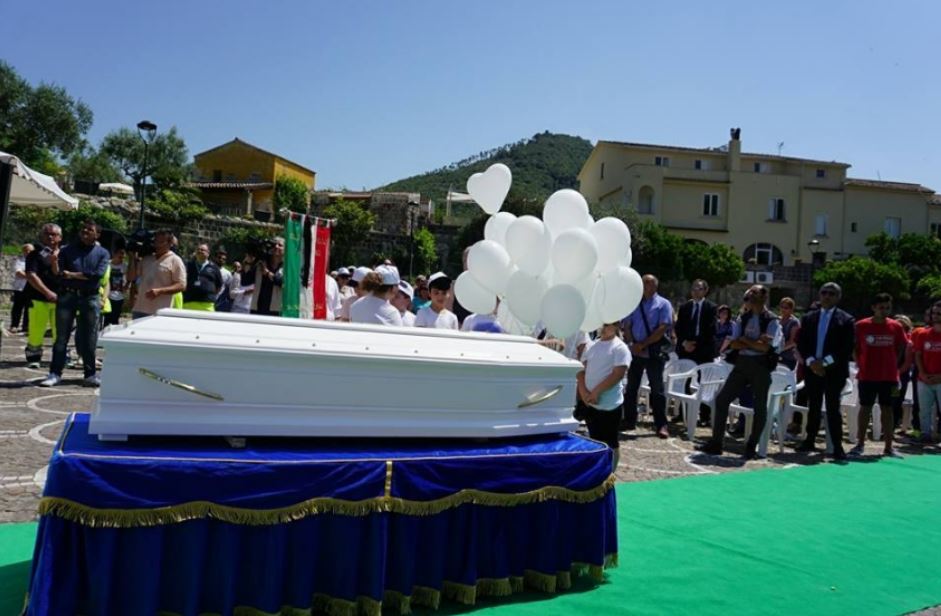 Centinaia di palloncini bianchi hanno accolto l’arrivo in chiesa della la tomba della piccola Maria Ungureanu, la bimba di 10 anni e di origine rumena, trovata spogliata e morta nella piscina di un ristorante della cittadina nel Beneventano. I funerali della piccola si sono svolti stamane presso la chiesa di San Salvatore Telesino e sono stati celebrati da don Franco Pezone in piazza Pacelli dopo una sosta nella chiesa del paesino dove la piccola faceva la chirichetta.
